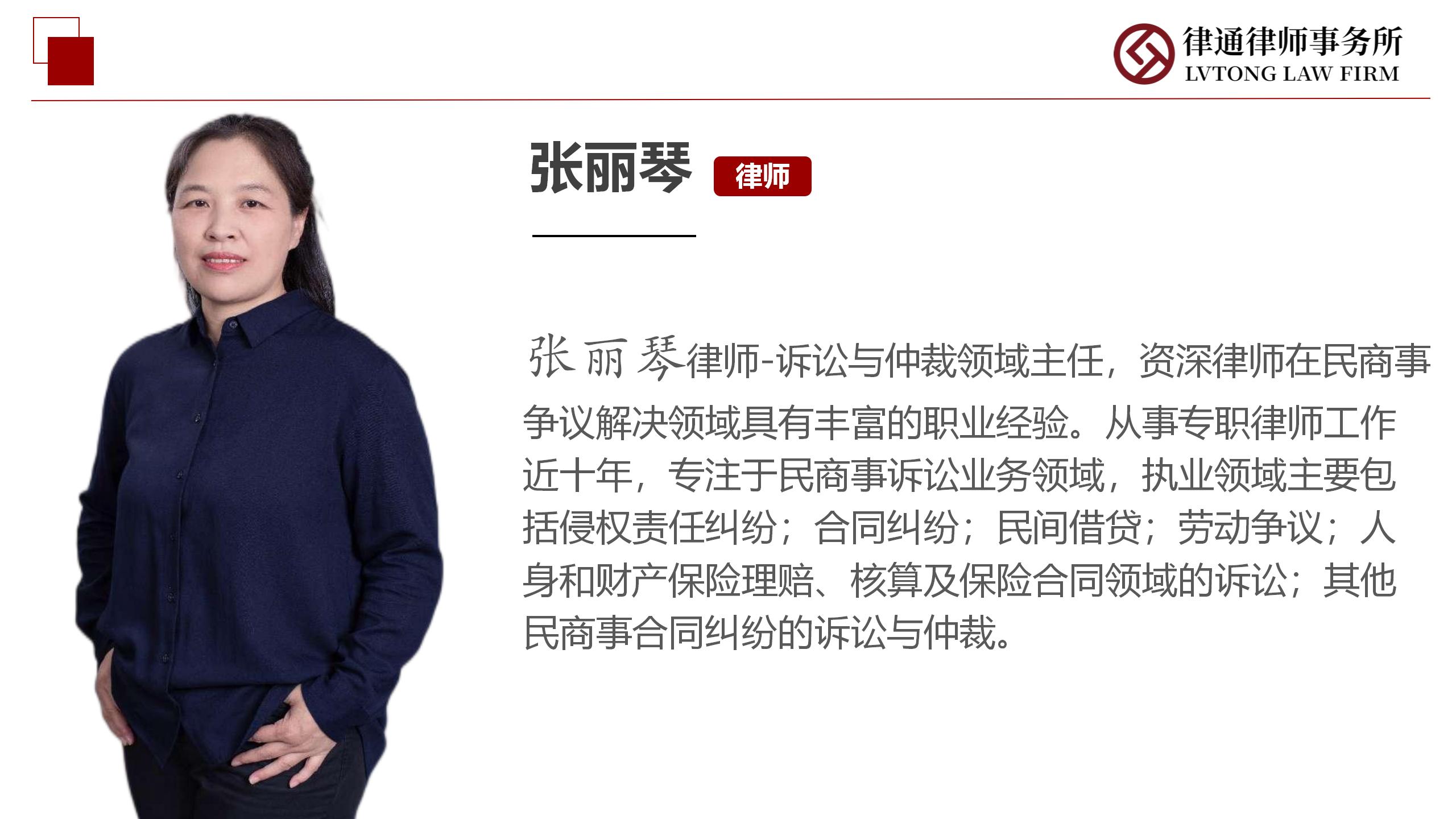 张丽琴律师,在民商事争议解决领域具有丰富的职业经验。从事专职律师工作近十年,专注于民商事诉讼业务领域,执业领域主要包括侵权责任纠纷;合同纠纷;民间借贷;劳动争议;人身和财产保险理赔、核算及保险合同领域的诉讼;其他民商事合同纠纷的诉讼与仲裁。