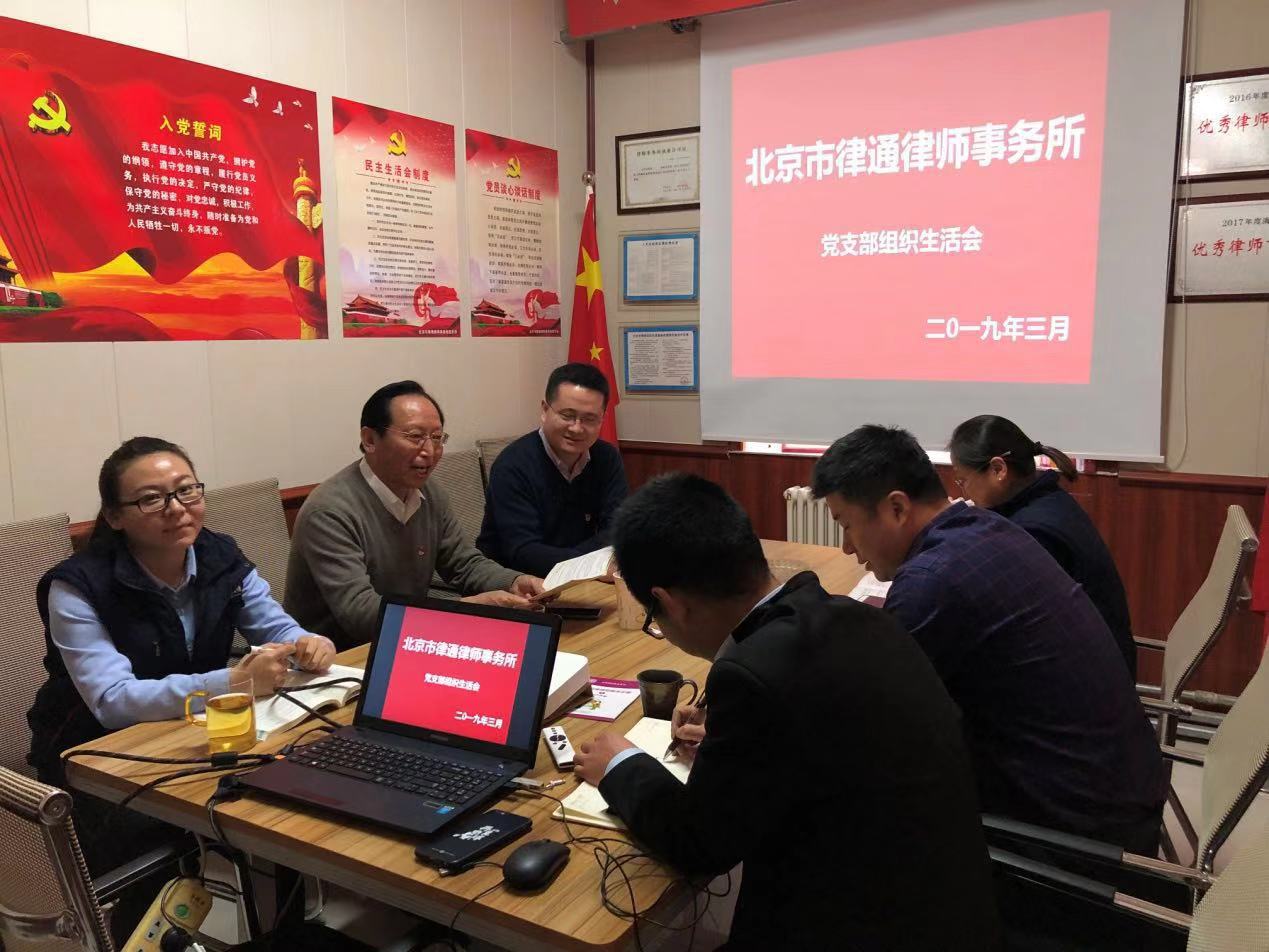 北京市律通律师事务所党支部2019年第一季度组织生活会于2019年3月14日下午在本所召开。党支部书记张波、党员杨树田及积极分子周娇等人员参加了本次会议,会议由党支部书记张波律师主持。